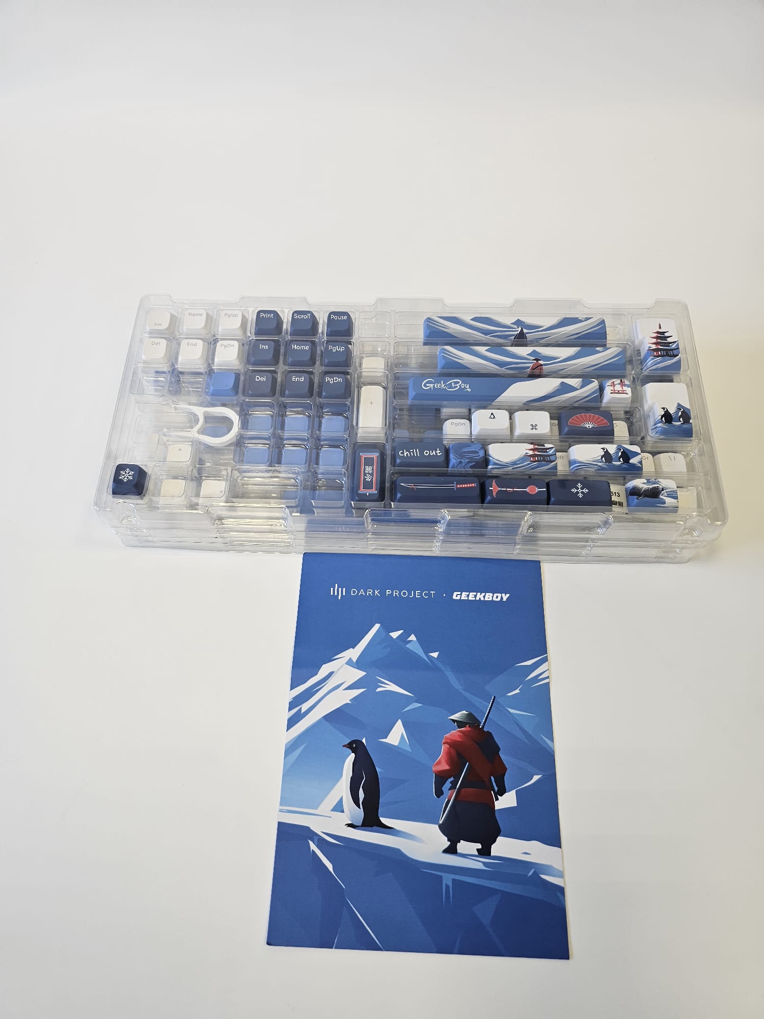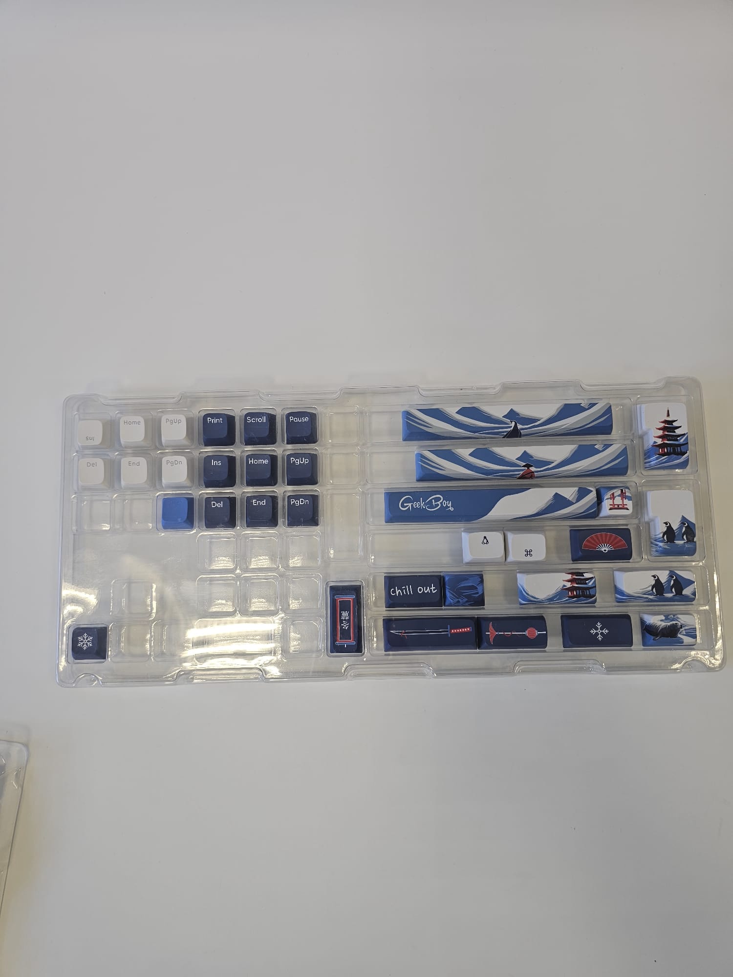 Opt for crisp-white keycaps for a clean, minimalist aesthetic or vibrant blue keycaps, featuring an intricate fusion of GeekBoy's signature style and Japanese-inspired artistry.