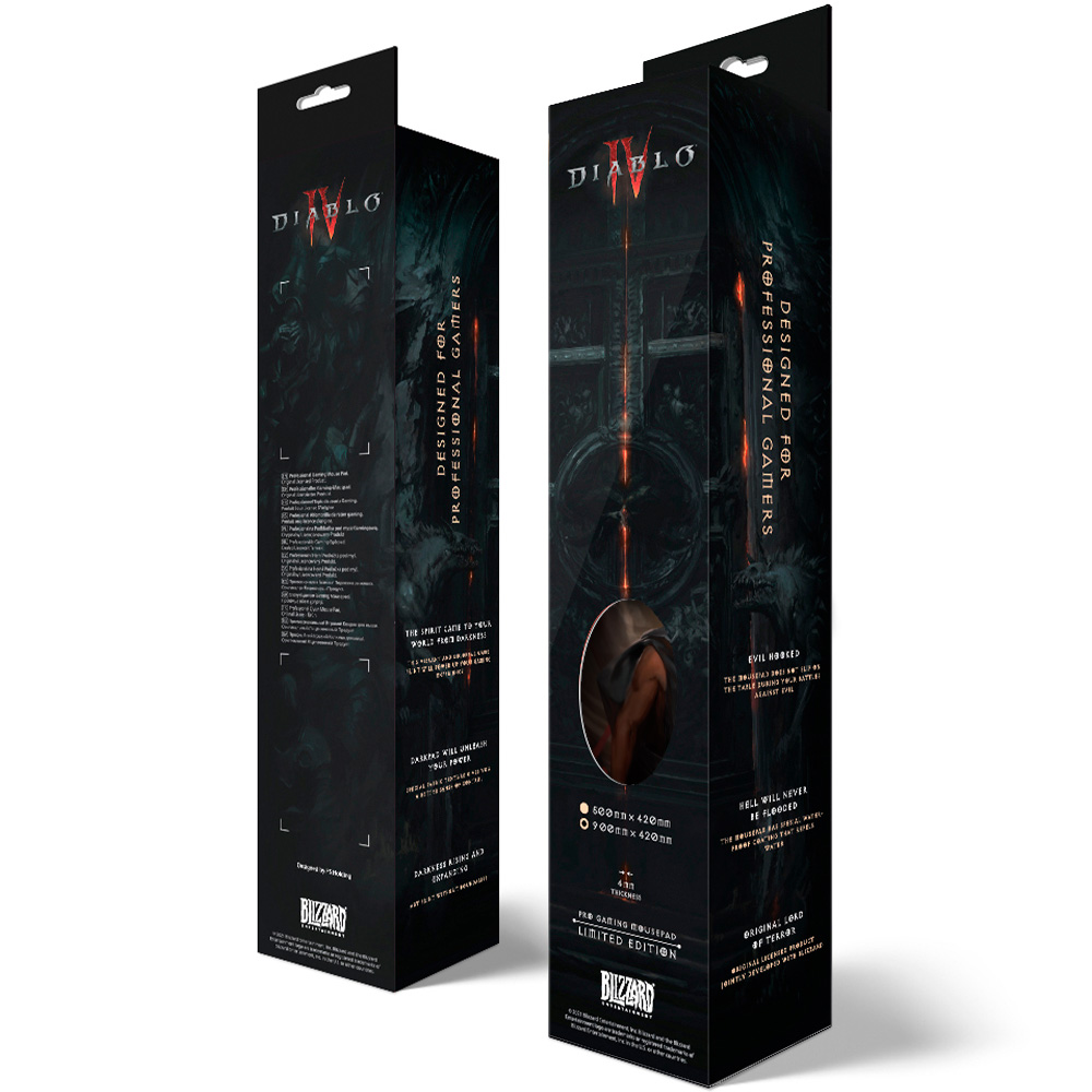 Tato herní podložka pod myš obsahuje epické vyobrazení Inaria a Lilith, dvou nejznámějších postav ze čtvrtého dílu série Diablo. Živý a detailní design ukazuje jejich mocnou přítomnost: Inarius, arcibiskup katedrály světla, drží svou svatou hůl a Lilith, dcera nenávisti, vládne svými démonickými silami. V pozadí slouží jako kulisa zničené město Kehjistan, které vzdává hold hernímu prostředí hry Diablo 4. Tato podložka pod myš je vynikajícím doplňkem herní sestavy každého fanouška, protože poskytuje pohodlný a odolný povrch pro delší herní seance a zároveň zobrazuje epický boj mezi anděly a démony.