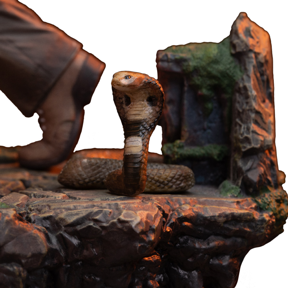 Iron Studios přinese také běžnou verzi sochy s jednodušším podstavcem, sochu "Indiana Jones - Indiana Jones - Art Scale 1/10", na které je hrdina na podlaze Chrámu válečníků Chachapoyan s jedním z kamenů pastí vystřelujících šipky a hadem Naja u nohou.