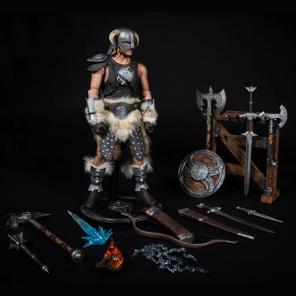 Figurka je vyrobena s plně kloubovým tělem a nabízí více než 30 kloubových bodů, které umožňují širokou škálu dynamických póz. Ručně malovaná plastika hlavy se vyznačuje složitou texturou kůže, která ještě více umocňuje realistický vzhled figurky. Dragonborn je oblečen do detailně propracovaného brnění s lemováním z umělé kožešiny, které dodává designu autentický nádech. Součástí figurky jsou čtyři výměnné sady rukou, které umožňují přizpůsobit Dragonbornovu pózu a úchop zbraní. Když už jsme u zbraní, základní verze obsahuje meč s pochvou, dýku a štít. Pro ty, kteří se rozhodnou pro edici Deluxe, je přiložen exkluzivní stojan na zbraně se sedmi dalšími zbraněmi. Mezi tyto zbraně patří válečná sekera, palcát, luk a toulec, dlouhý meč, válečné kladivo a bojová sekera.