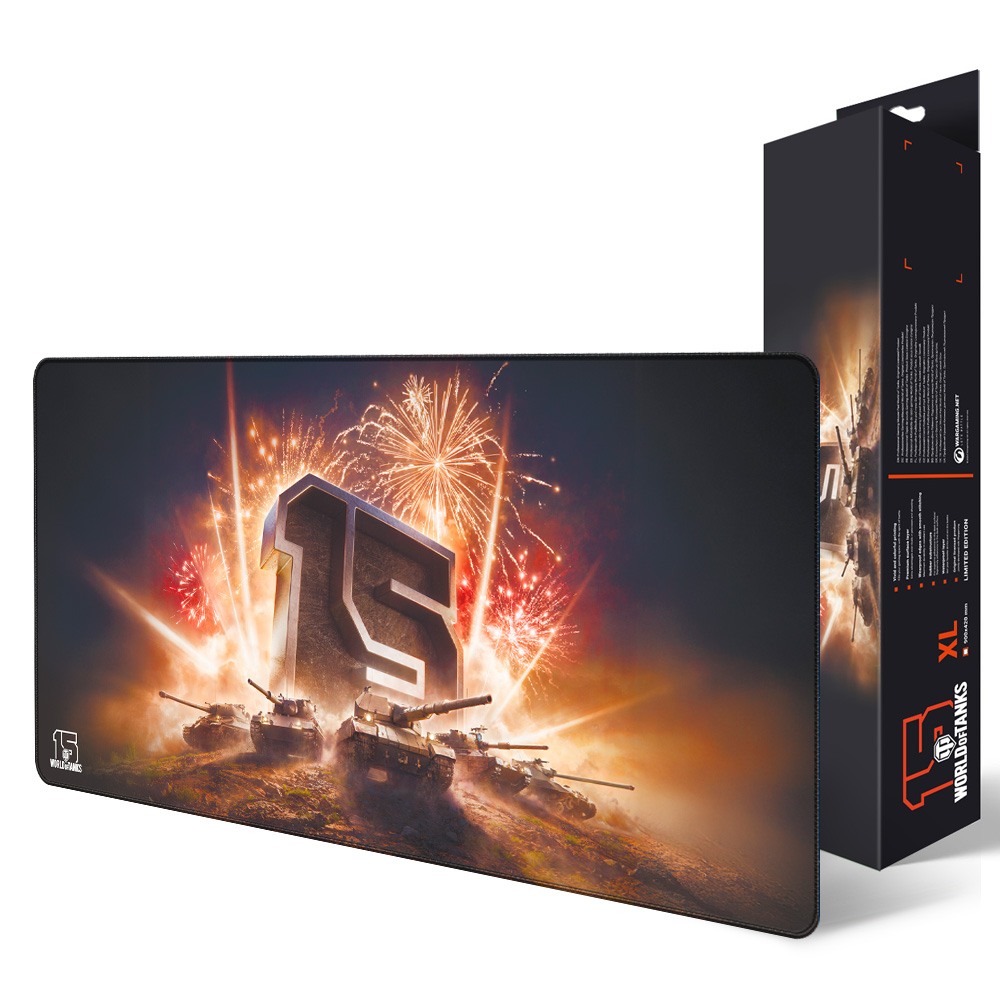 World of Tanks Podložka pod myš XL 15. výročí Vylepšete svou herní sestavu a oslavte 15 let tankové akce s oficiální podložkou pod myš WoT 15th Anniversary XL! Tato masivní podložka pod myš není pouhým povrchem, je to bitevní pole pro vaše vítězství, které zdobí úžasný pamětní design. Tato podložka pod myš XL o rozměrech 900 x 420 x 3 mm poskytuje dostatek prostoru pro myš i klávesnici a vytváří tak celistvou a pohlcující herní plochu. Prémiový povrch "Speed" je navržen pro rychlé a přesné pohyby myší, což vám poskytne výhodu v každé potyčce. Je vyrobena pro dlouhou životnost, její okraje odolné proti opotřebení jsou vyztuženy hladkým prošíváním s přeléváním, které zabraňuje roztřepení i během nejintenzivnějších herních seancí. Vodoodpudivý povrch přidává další vrstvu ochrany proti rozlití, takže vaše bojová stanice zůstane nedotčená. Pod tím vším protiskluzová gumová základna pevně přilne k vašemu stolu a zaručí neochvějnou stabilitu bez ohledu na to, jak zběsilý boj se odehrává. Živá grafika k výročí představuje monumentální číslici "15" uprostřed oslnivého ohňostroje s ikonickými tanky valícími se vpřed, což dokonale vystihuje oslavného ducha hry World of Tanks. Tato podložka pod myš je nezbytným vylepšením pro každého pořádného tankistu a fantastickým způsobem, jak uctít 15 let epického hraní. Vlastnosti: Oficiální zboží k 15. výročí hry World of Tanks Velikost XL: 900 mm x 420 mm x 3 mm Prémiový povrch "Speed" pro rychlé a přesné pohyby myší Odolný s hladkými prošitými okraji odolnými proti opotřebení Voděodolný povrch pro větší ochranu Protiskluzová gumová základna pro maximální stabilitu Zářivý pamětní design k 15. výročí Dominujte na bojišti s přesností a stylem na podložce pod myš WoT 15th Anniversary XL!