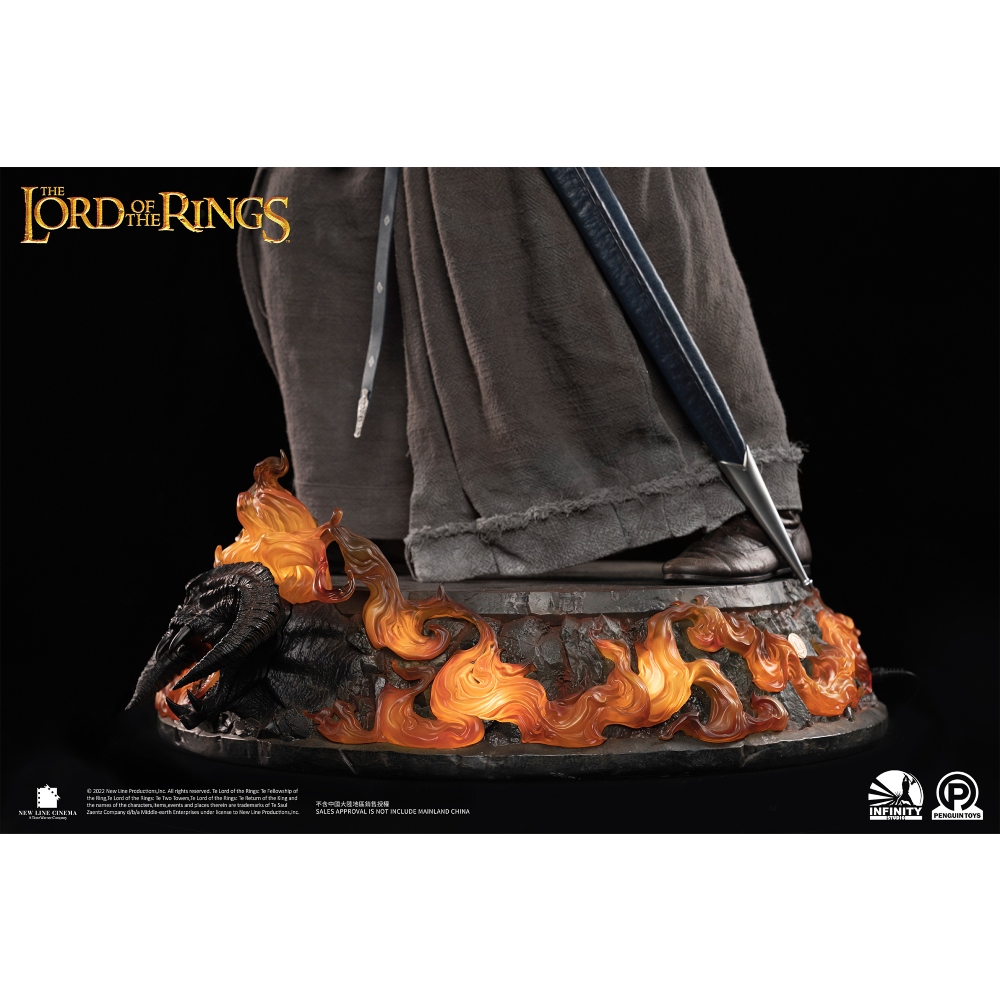 Σας παρουσιάζουμε το Infinity Studio X Penguin Toys The Lord of the Rings - Gandalf The Grey Premium Statue Scale 1/2 Master Forge Series. Επιλέξτε ανάμεσα στις επιλογές μας για το γλυπτό κεφαλής από πολυτόνη και σιλικόνη, με τη σιλικόνη να χρησιμοποιεί σιλικόνη πλατινένιας ποιότητας που δεν θα αποχρωματιστεί ή θα παραμορφωθεί με την πάροδο του χρόνου, εξασφαλίζοντας μακροχρόνια διατήρηση. Οι περίπλοκες τεχνικές μας για το ρίζωμα των μαλλιών εφαρμόζονται στα μαλλιά, τα φρύδια και τη γενειάδα, προσθέτοντας ένα επιπλέον επίπεδο λεπτομέρειας. Η ζωγραφική στο πρόσωπο αναδεικνύει τις πτυχές και τις ρυτίδες, αποτυπώνοντας την ηλικία του Gandalf με πιο ζωντανό τρόπο. Τα εκφραστικά χαρακτηριστικά αποδίδουν την αποφασιστικότητα και το θάρρος του όταν μάχεται τον δαίμονα Balrog. Σε αυτό το άγαλμα υψηλής ποιότητας περιλαμβάνονται δύο όπλα. ① Το Glamdring, γνωστό και ως Foe-hammer, ένα σπαθί χειρός και μισού που ανήκει στον Γκάνταλφ. ② Το ραβδί της Μόρια, που δόθηκε από την Γκαλαντρίελ, το οποίο χρησιμοποίησε ο Γκάνταλφ για να αντιμετωπίσει τον Μπαρόγκ. Ο πολύτιμος λίθος στο ραβδί μπορεί να φωτιστεί με το πάτημα ενός κουμπιού. Προσαρμόσαμε το σχέδιο του ραβδιού ώστε να μοιάζει πολύ με το κινηματογραφικό σκηνικό που χρησιμοποιήθηκε σε αυτή την εμβληματική σκηνή. Η στολή του Γκάνταλφ είναι κατασκευασμένη από πραγματικά υφάσματα, όπως λινό και πλέιτερ. Η ζώνη και ο ιμάντας του θηκαριού έχουν βελτιστοποιηθεί σχολαστικά για ακρίβεια, αντικατοπτρίζοντας την απεικόνιση της ταινίας. Η βάση με θέμα τον Balrog προσθέτει μια ατμοσφαιρική πινελιά με φώτα που αναπνέουν. Ενσωματωμένο με ένα τσιπ NFC που κατασκευάστηκε αποκλειστικά για τη σειρά Master Forge 1/2 Scale, σκανάροντάς το με τη λειτουργία NFC ενός κινητού τηλεφώνου, θα σας κατευθύνει σε μια αντίστοιχη σελίδα προϊόντος για περισσότερες πληροφορίες. Ο Gandalf εντάσσεται στη σειρά Master Forge μαζί με τον Legolas, σχηματίζοντας τη Συντροφιά του Δαχτυλιδιού. Μείνετε συντονισμένοι καθώς θα συνεχίσουμε να δημιουργούμε αγάλματα 1/2 περισσότερων χαρακτήρων από τη Συντροφιά.