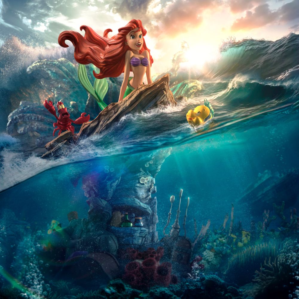 Sorti en 1989, La Petite Sirène est le 28e long métrage de Disney Animation, vaguement basé sur le conte de fées du même nom de Hans Christian Andersen, qui présente la princesse Ariel comme protagoniste, une jeune sirène aventureuse et têtue du royaume d'Atlantica. Sa curiosité et son goût pour l'aventure lui causent parfois des ennuis, mais Ariel surmonte tous les défis auxquels elle est confrontée. Ses meilleurs amis sont un poisson appelé Flounder et un crabe appelé Sebastian. Avec ses cheveux rouge vif et sa queue vert émeraude, Ariel n'est pas satisfaite de sa vie sous-marine, mais elle est fascinée par le monde des humains. Ignorant les conseils de son père, le roi Triton, elle remonte à la surface de l'océan où elle tombe amoureuse du prince Éric dès qu'elle le voit. Lorsqu'il le sauve d'un naufrage, il est charmé par sa voix et promet de retrouver la jeune fille qu'il a entendue chanter et qui lui a sauvé la vie, même s'il n'a pas encore rencontré Ariel. Cherchant un moyen de rejoindre Eric dans son monde, Ariel part à la recherche d'Ursula, la sorcière des mers, qui souhaite utiliser la princesse pour obtenir le trident magique de Triton. En échange de sa voix, Ariel est transformée par Ursula en humain pendant trois jours. La sirène doit recevoir le vrai baiser d'amour d'Eric pour rester humaine, sinon elle redevient sirène et appartient alors à la sorcière. Le succès du film a donné naissance à une franchise multimédia, avec une série animée pour la télévision en 1992, une suite avec The Little Mermaid II : Return to the Sea sorti en 2000 en vidéo amateur, un préquel dans The Little Mermaid : Ariel's Beginning de 2008, et une adaptation en comédie musicale à Broadway. Ariel a été intégrée à la gamme des Princesses Disney sous licence, avec un nombre infini de produits et d'objets de collection. Une version en prise de vue réelle inspirée du film d'animation classique sortira cette année, et la Petite Sirène surfe à nouveau sur les grandes vagues de la culture populaire !