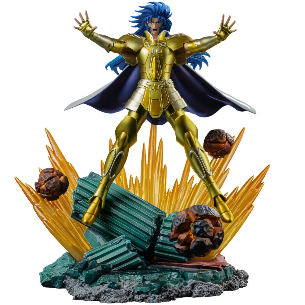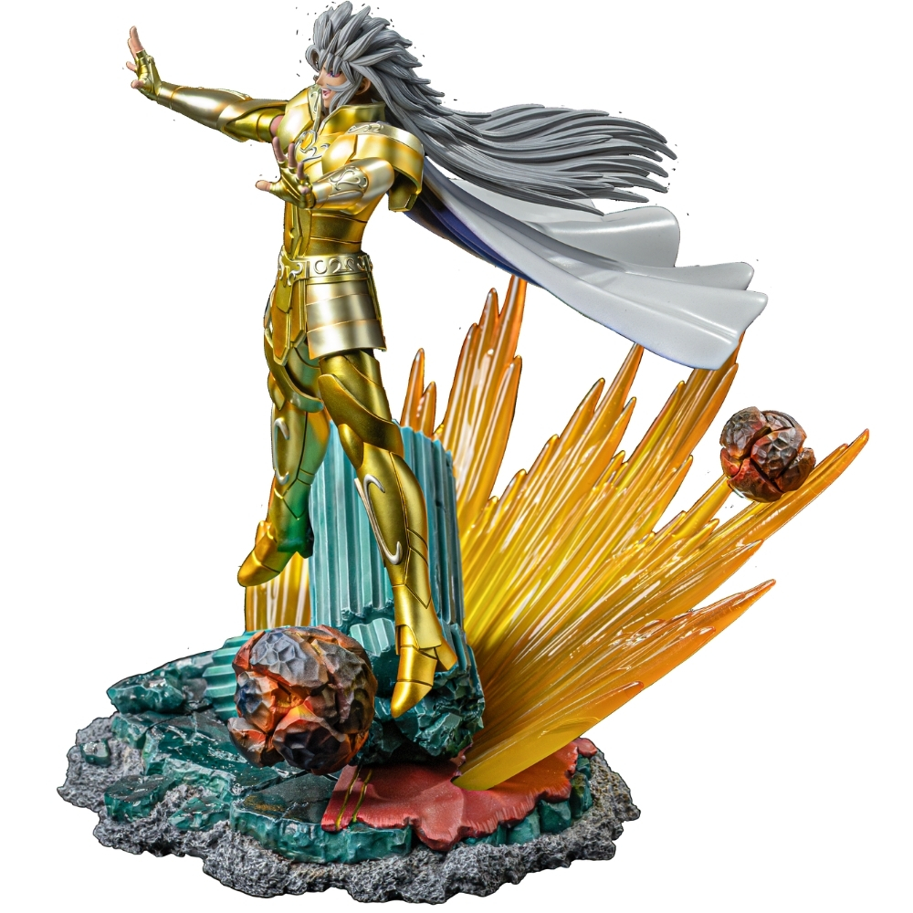 Gemini Saga is one of the most complex and powerful characters in the universe of Saint Seiya. The Gemini Gold Saint is recognized for his extraordinary strength, mastery of Cosmo, and strategic intelligence. His story is marked by an intense internal conflict between good and evil, the result of his divided personality. While one part of his soul seeks to protect Athena and humanity, the other craves absolute power, placing him at the center of some of the most dramatic events in the saga. Among his most famous techniques are Another Dimension and Galaxian Explosion, devastating attacks that showcase his immense destructive power.
