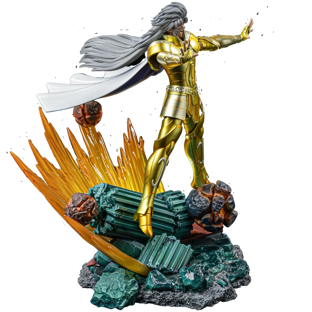 About the product: Produced by Iron Studios, the Gemini Saga – Saint Seiya statue presents the Gold Saint in an imposing pose, wearing his iconic golden armor with impressive richness of detail. The statue is made with high-quality materials such as Polystone and may contain parts in resin, ABS, PVC, metal, and fabric. The hand-painted finish guarantees a unique and exclusive artistic touch to satisfy any collector. An essential item for Saint Seiya fans.