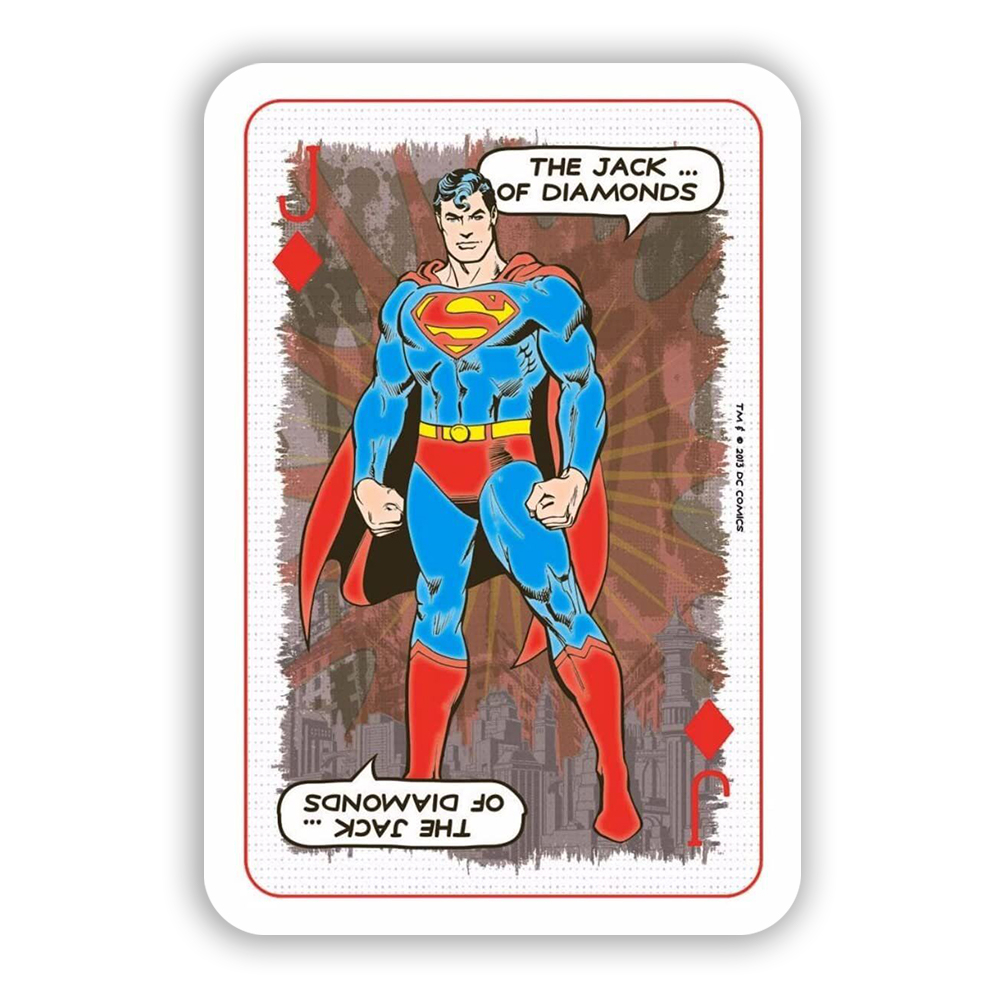 This pack of Waddingtons Number 1 playing cards features heroes and villains of the classic DC Originals universe, including The Joker! Now you can play with Wonder Woman, Batman, Superman or Flash - a must-have for any Justice League enthusiast!