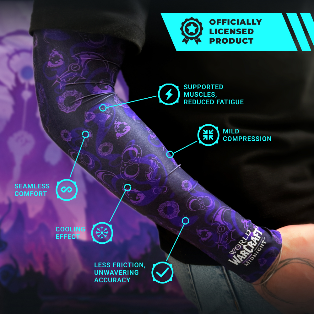 Tökéletes ajándék: Egy stílusos kartondobozban, exkluzív Blizzard-művészeti alkotással - ideális ajándék minden World of Warcraft-rajongónak vagy a Midnight bővítés rajongójának. A 4 méretben (S-től XL-ig) kapható World of Warcraft Midnight Seamless Gaming Arm Sleeve (fekete/lila) a hatalom, a rejtély és a Midnight birodalom sötét mágiájának szimbóluma. Lépj bátran az árnyékba. Szereld fel magad a legjobb WoW-felszereléssel, és hagyd, hogy a Midnight energiája vezesse a következő kalandodat.