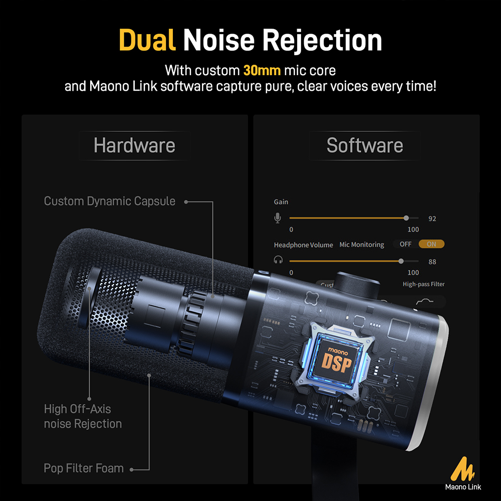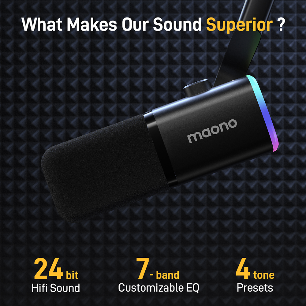 For extra personalization, the RGB version includes programmable lighting, and with the Maono Link software, you can customize EQ, apply DSP effects, and monitor your audio in real time.
