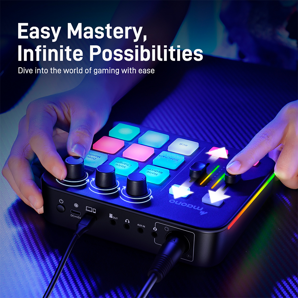 The MAONOCASTER G1 NEO is an essential piece of gear for gamers and aspiring streamers entering the world of live broadcasting. This compact audio mixer delivers excellent sound performance while integrating customizable sound effects and vibrant RGB lighting to enhance your gaming and streaming atmosphere. Its lightweight, user-friendly design makes setup and operation simple, allowing you to focus on the content that matters most.