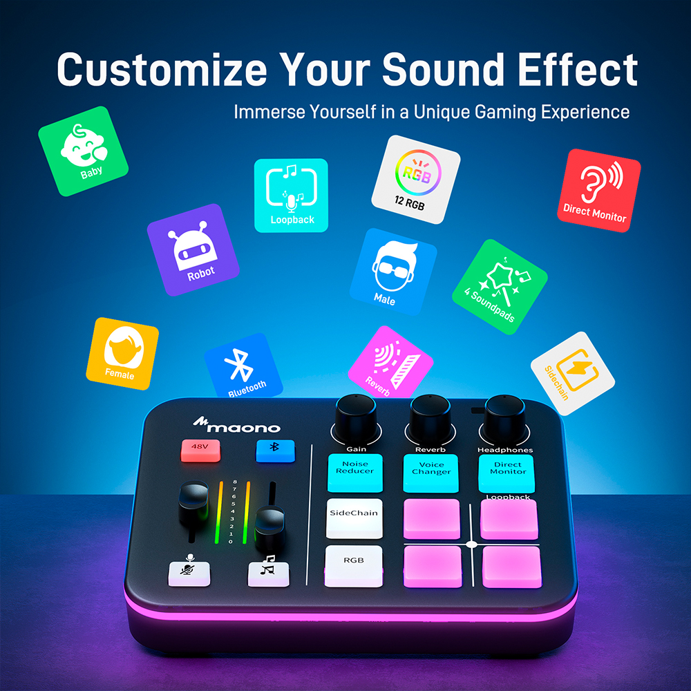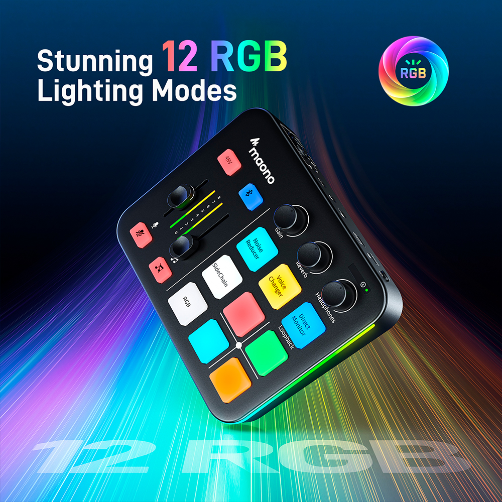 MAONOCASTER G1 NEO Audio Mixer for Game Streamer Bluetooth/USB Sound Console with RGB Lighting and Voice Effects – Ideal for Gaming, Streaming, and Content Creation