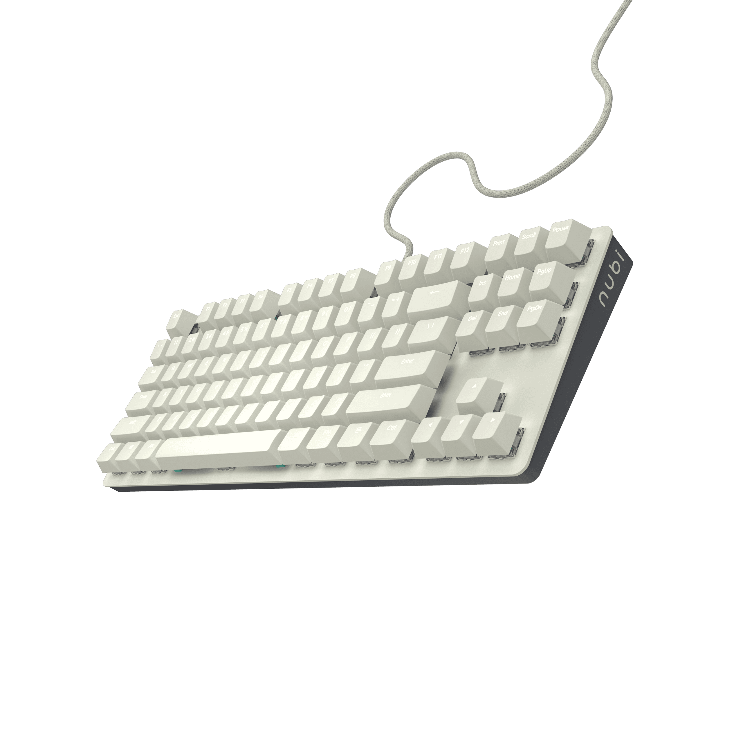 The Cherry-profile keycaps are made from Doubleshot ABS using Nubi’s own mold, featuring transparent legends designed to pair perfectly with the keyboard’s soft white backlight. Additionally the included 1.8m braided cable matches the body's color for a seamless setup.