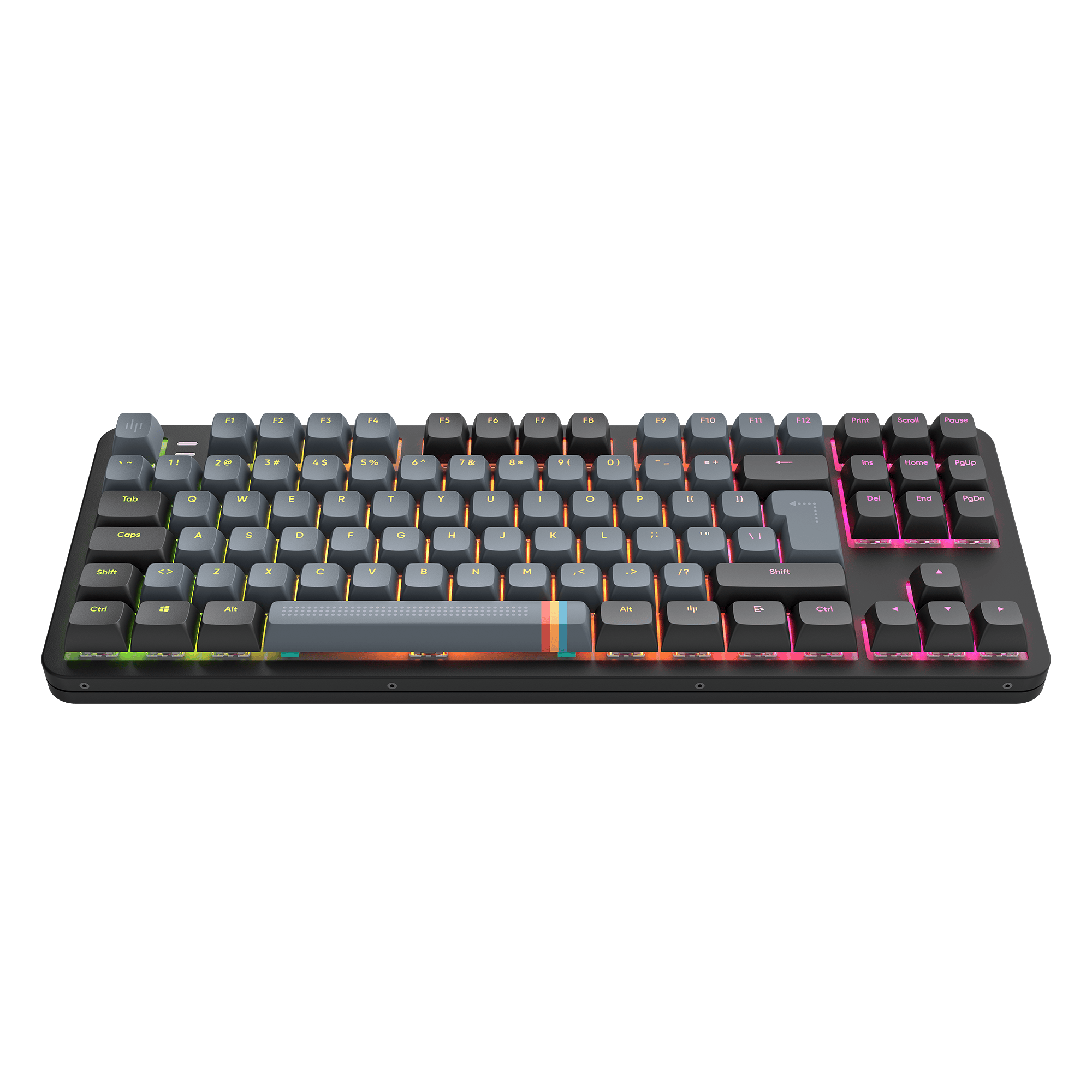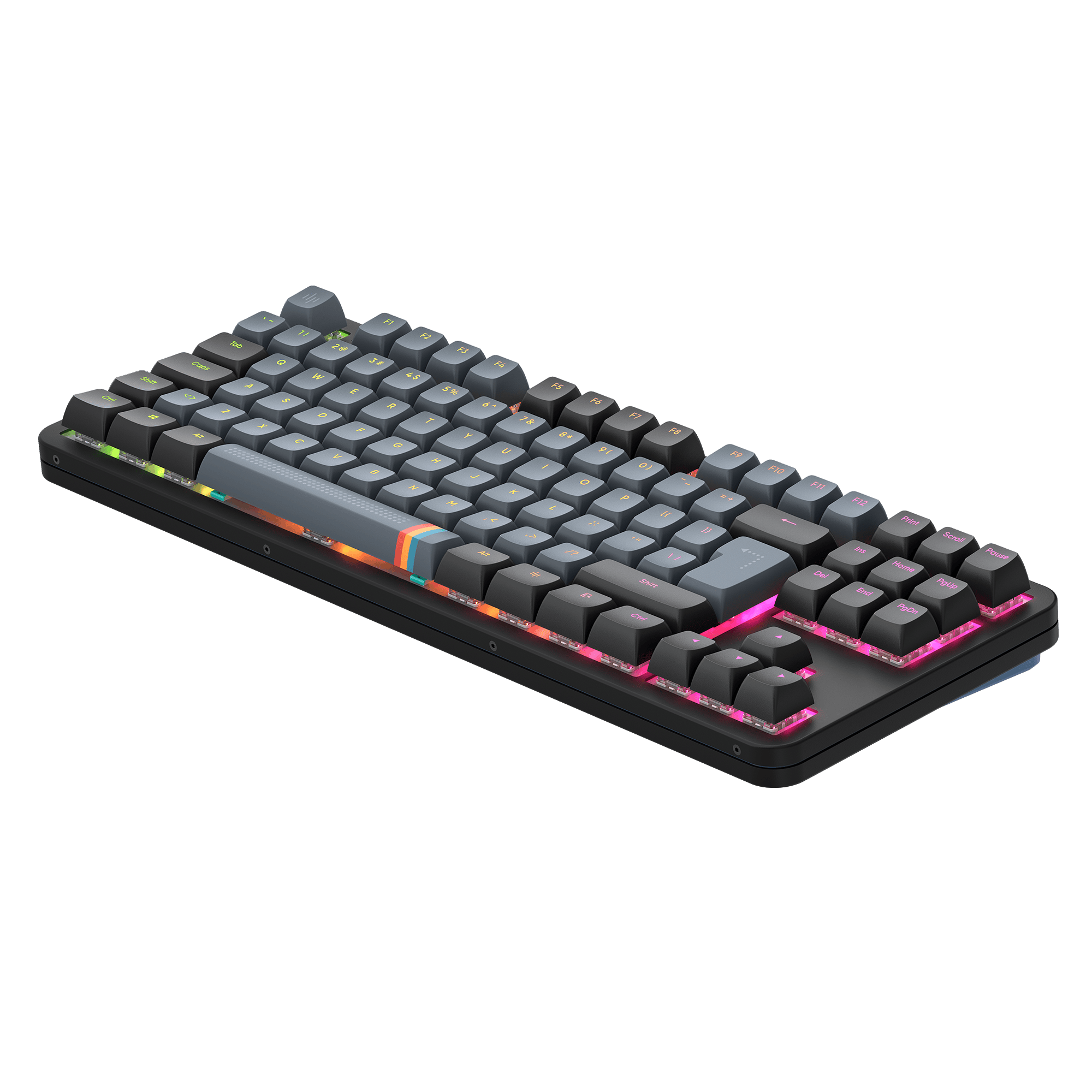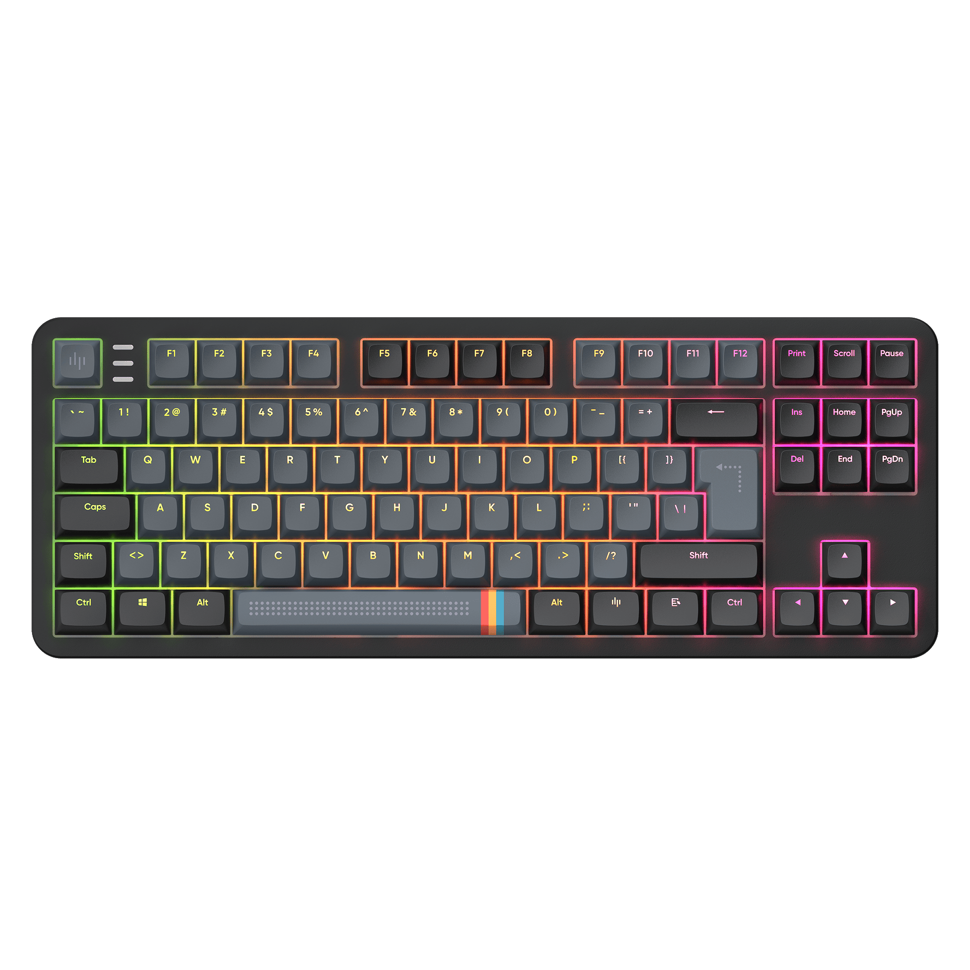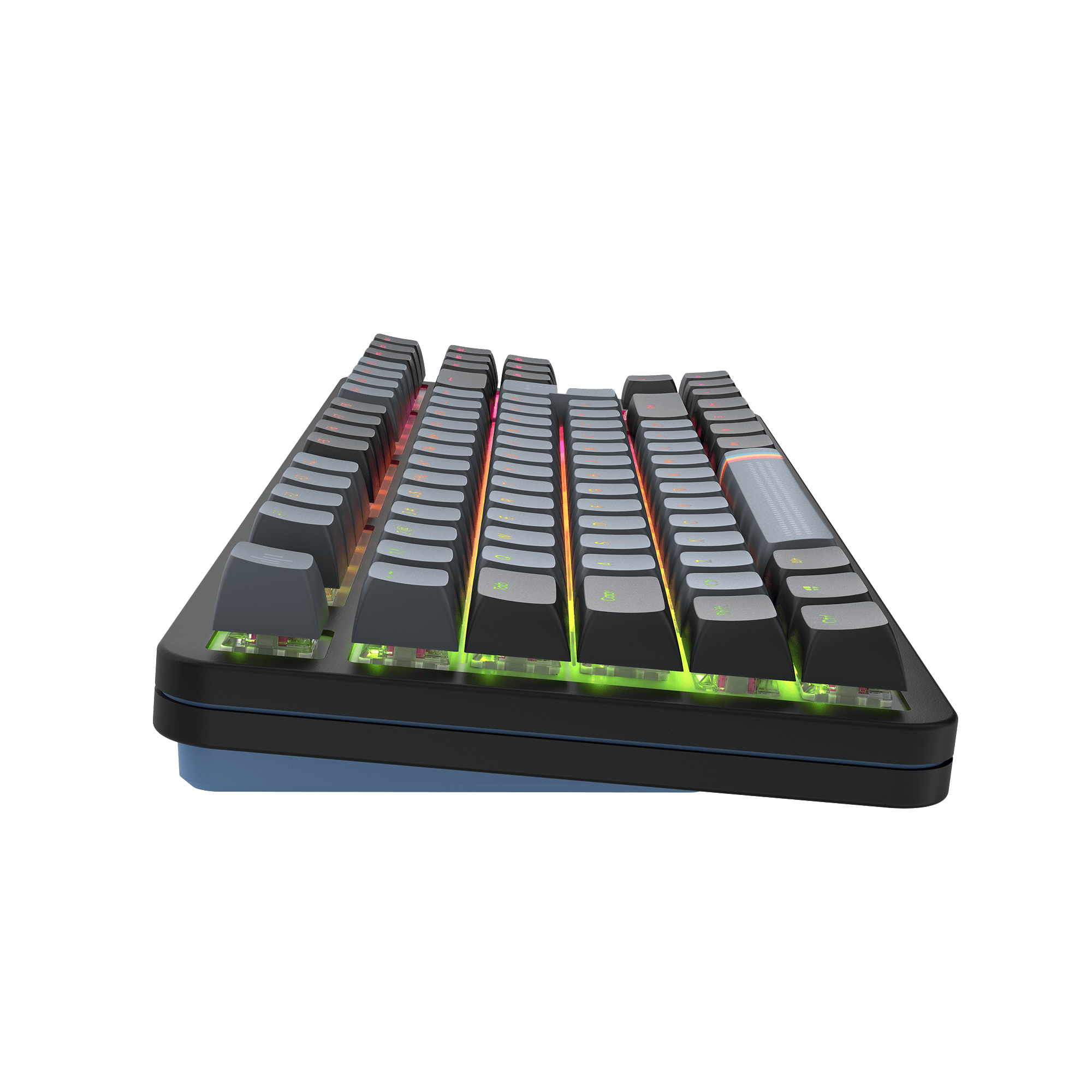 At its heart, the G3MS Zircon pre-lubed mechanical switches provide an ultra-smooth and precise gaming experience. With dual-layer noise insulation for a quieter experience and fully customizable RGB backlighting, the ALU87 Midnight sets a new standard for gamers seeking unmatched performance and customization at this price range.