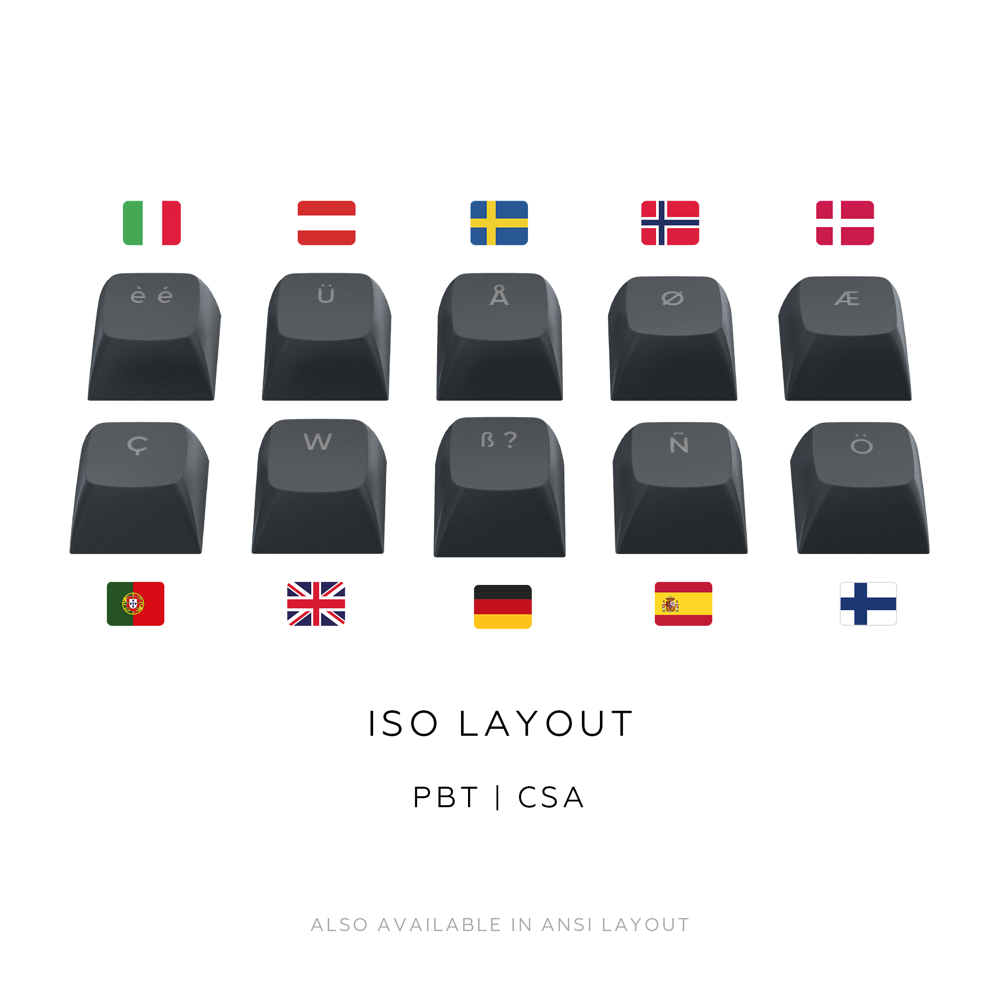 Languages Covered: While this keyboard is equipped with pre-installed German keycaps, it also comes with additional keycaps for the following languages and characters straight out of the box: Danish, Austrian, UK English, Spanish, Portuguese, Italian, Finnish, Norwegian, and Swedish.