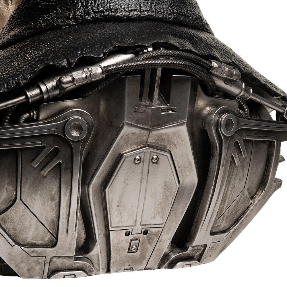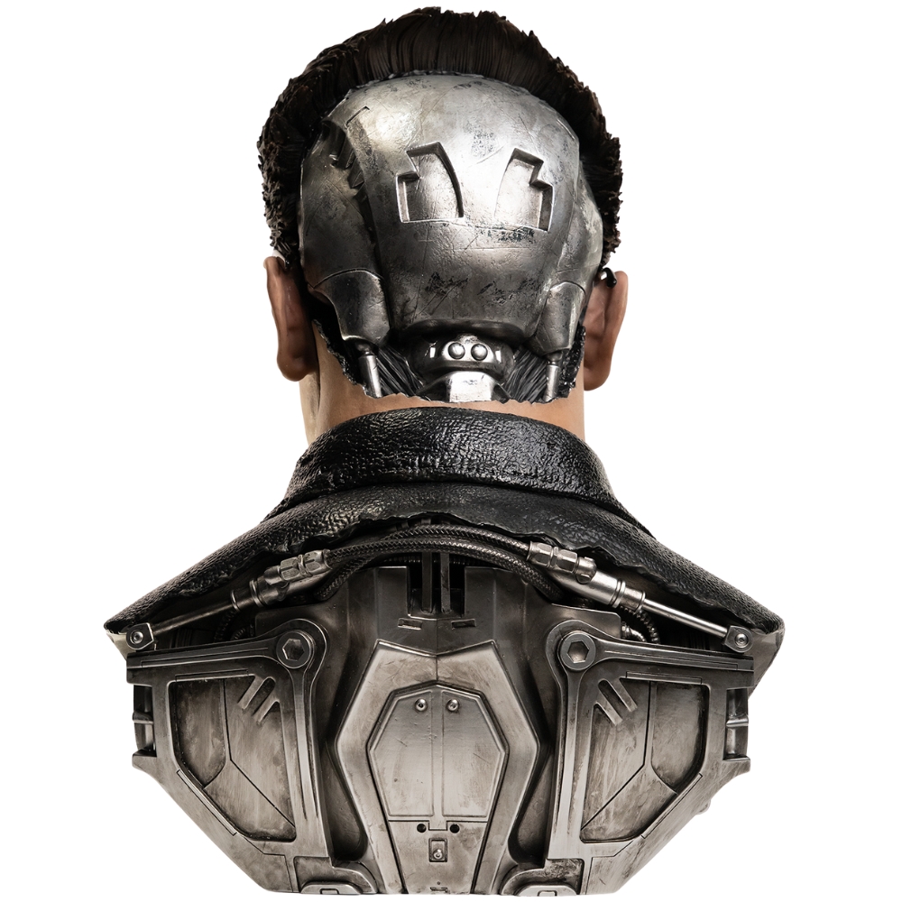 The Terminator 2 T-800 Model 101 Art Mask also includes removable sunglasses, allowing collectors to choose between the iconic clean look or his menacing, battle-ready presence. The back of the mask is equally impressive, with a fully detailed battle chassis design.