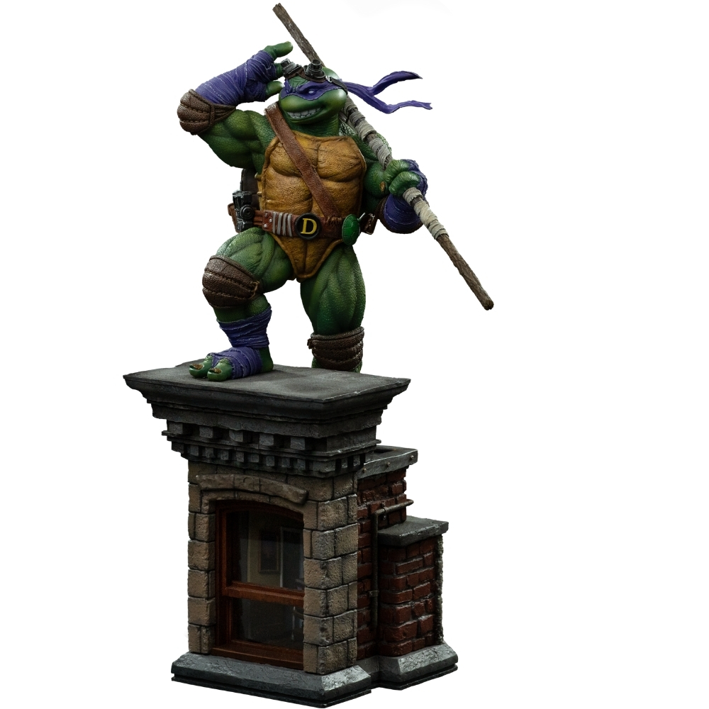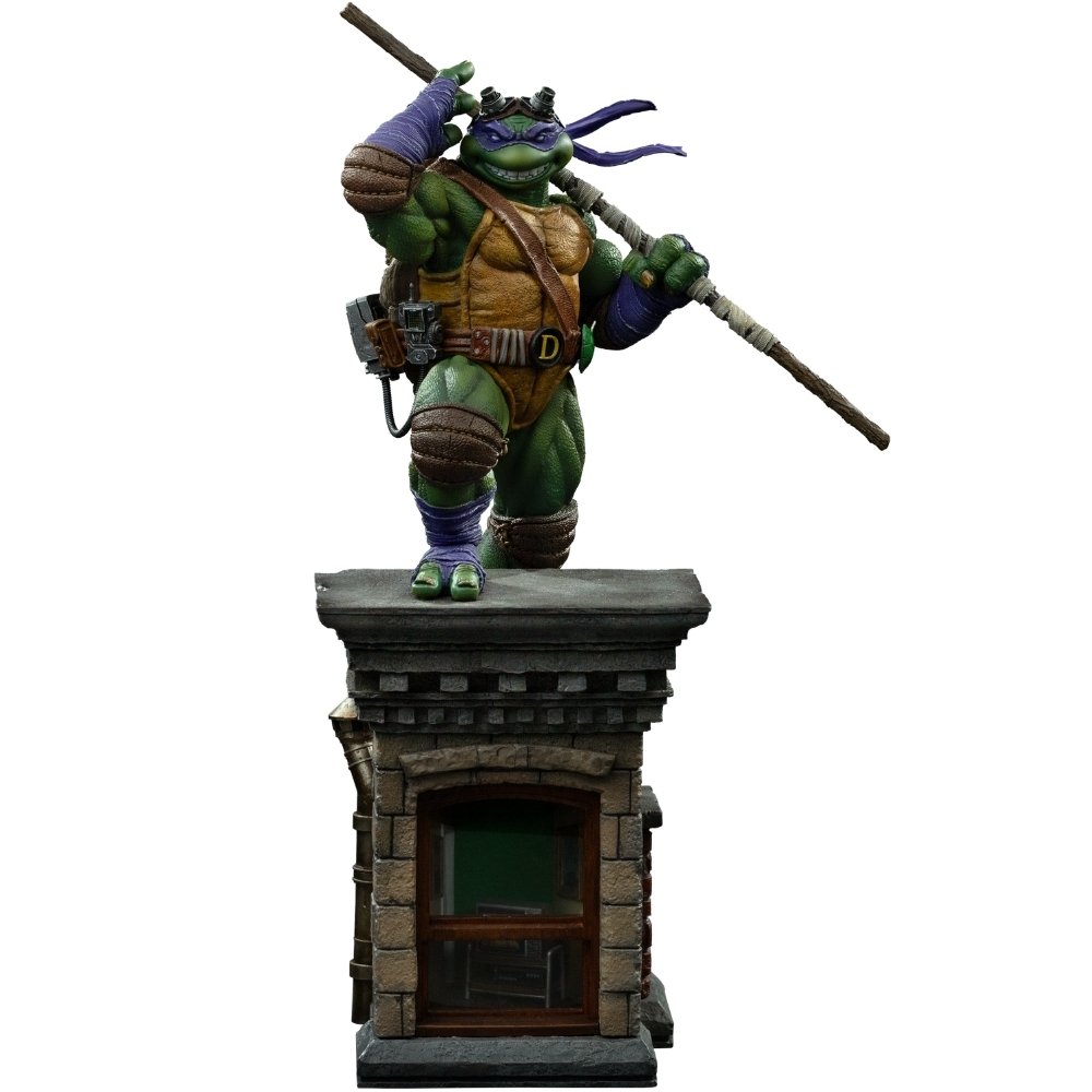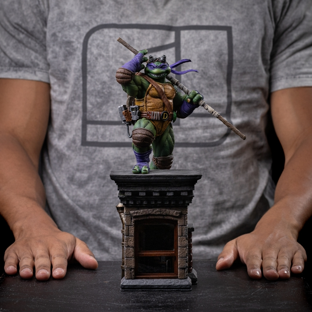 About the product: Produced by Iron Studios, the Donatello – Teenage Mutant Ninja Turtles statue showcases the hero in a dynamic and action-packed pose, highlighting his intelligent personality and signature fighting style. The statue is made with high-quality materials such as Polystone and may contain parts in resin, ABS, PVC, metal, and fabric. The hand-painted finish guarantees a unique and exclusive artistic touch to satisfy any collector. An essential addition for Teenage Mutant Ninja Turtles fans.