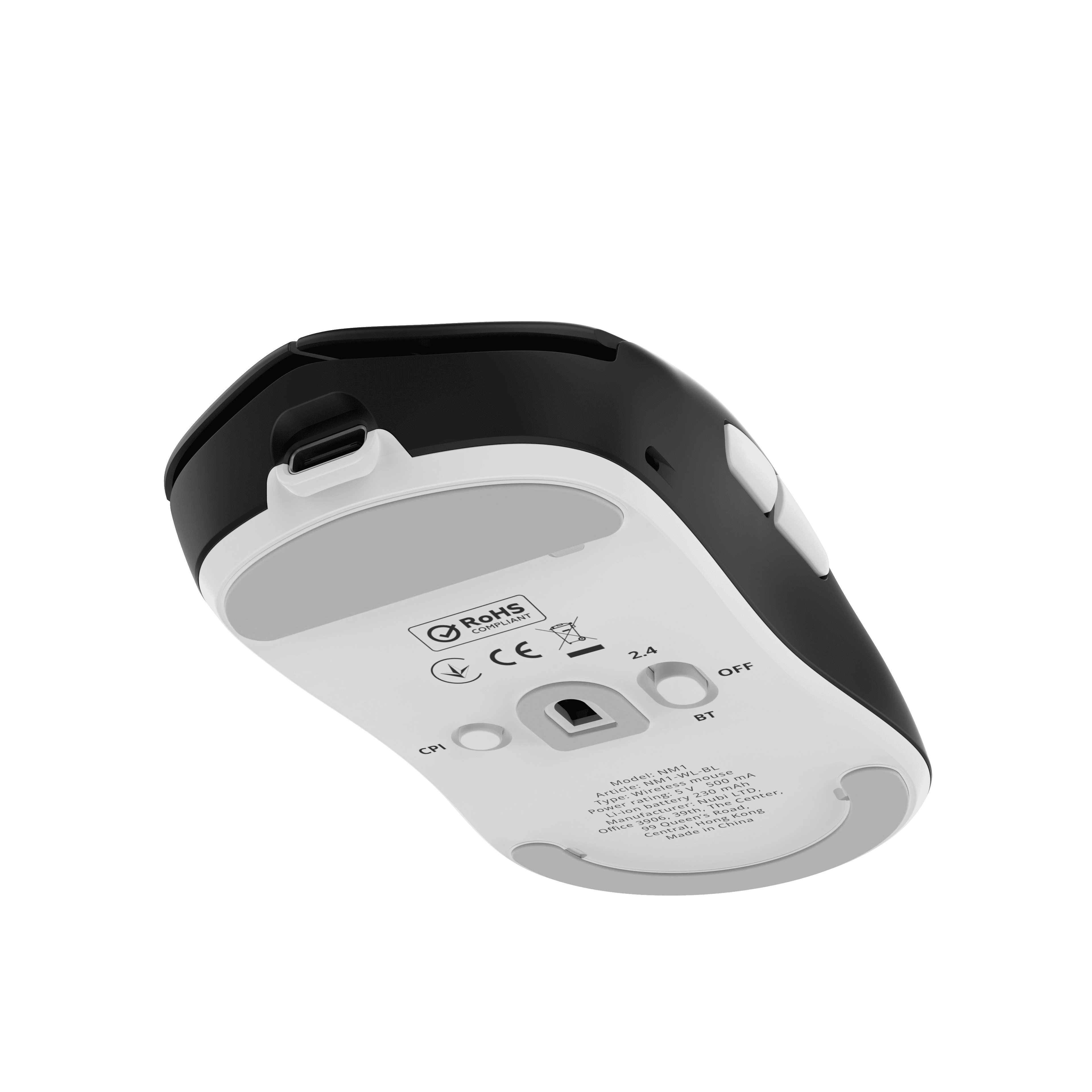 Equipped with the PixArt PAW3395 sensor, the NM1 provides accurate and responsive tracking. With 1000Hz polling in both wired and 2.4GHz wireless modes, the mouse guarantees fluid performance whether you’re gaming or working. DPI can be customized through software (800–12000 DPI), and indicator colors give you instant feedback (blue, green, yellow, pink, cyan, white).