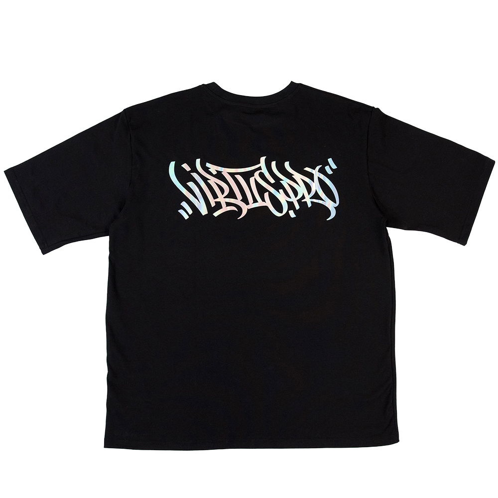 Holographic Back Logo: The back of the T-shirt features the iconic Virtus.pro wordmark with a striking holographic finish. This iridescent logo reflects light, creating a distinct, shifting color effect.