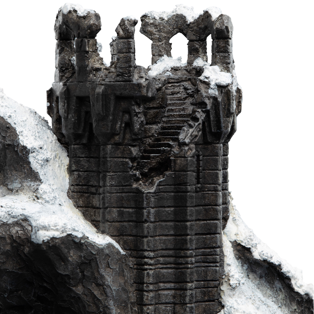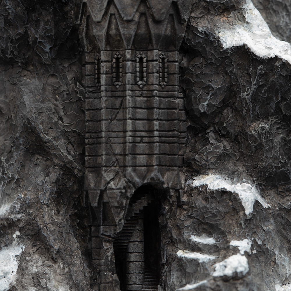 The team studied the mountain’s place in the legendarium, and the momentous impact struck upon its tower by the clash of ancient mythical forces. What emerged was a miniature environment that feels as though it was lifted from the pages themselves, a piece of Middle-earth shaped by steady hands and quiet passion.